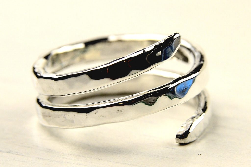 スパイラルリング自体がスネークの意匠を持ちますので、わかりやすく頭としっぽを強調しました。