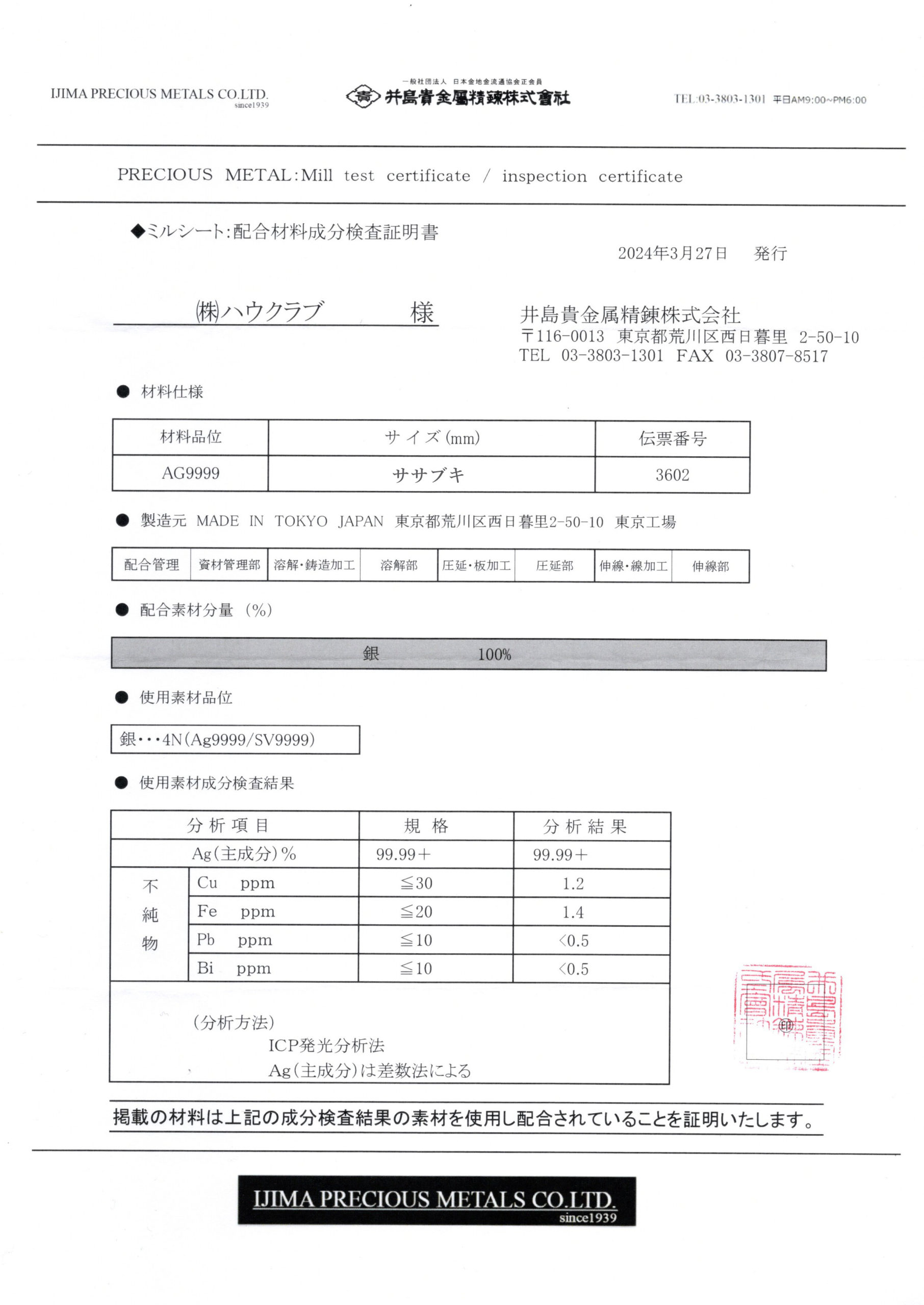 ▶ミルシート2024年3月27日発行